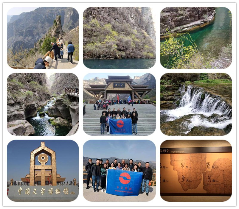 在為期三日的大峽谷旅游中,各位員工依次游覽了紅豆峽、八泉峽和青龍峽,其中當(dāng)屬八泉峽景色最為壯觀:高峽平湖,泛舟其上;峽谷幽深,山泉流淌;高空纜車,看遍群山;懸崖古棧,陡峭驚險,贊我祖國大好河山,處處是風(fēng)光!在行程的最后,大家共同參觀了位于河南安陽的中國文字博物館,從甲骨文到現(xiàn)代漢語,將漢字五千年發(fā)展史娓娓道來,感先人之功,品漢字之美!